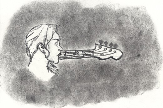 Next half an hour, I spent mad about the fact that the proportion of the bass arm was way off and the framing of the picture was terrible (besides, in real life I cannot just drop charcoal in the background and spread with my fingers…).